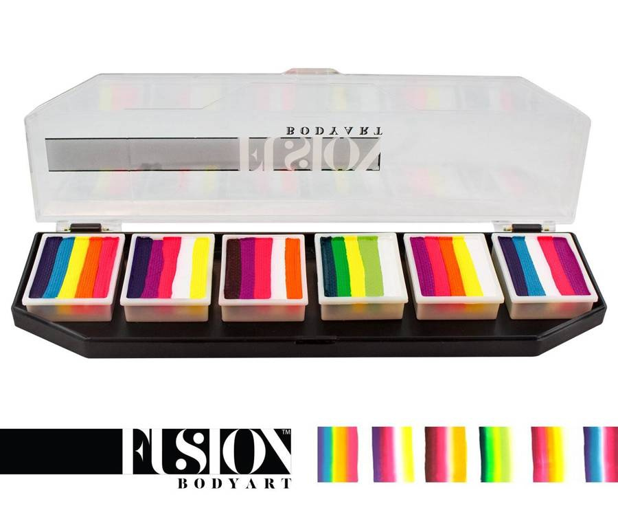- Fusion Body Art &FX to najwyższej jakości australijskie, kompaktowe, wodne farby do malowania twarzy i ciała. Mocno napigmentowane, z doskonałym kryciem - pozwalają stworzyć najbardziej profesjonalne rysunki na ciele.