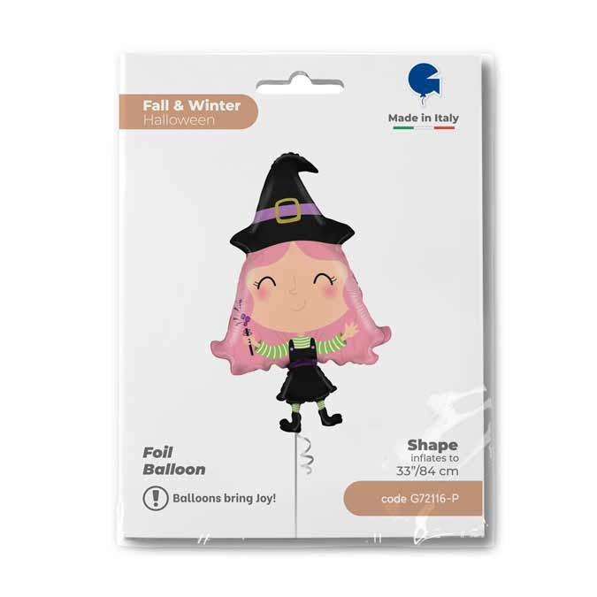 - Wyjątkowy balon foliowy w kształcie uroczej czarownicy :). Idealny jako dekoracja na Halloween. Rozmiar: 33 cale
