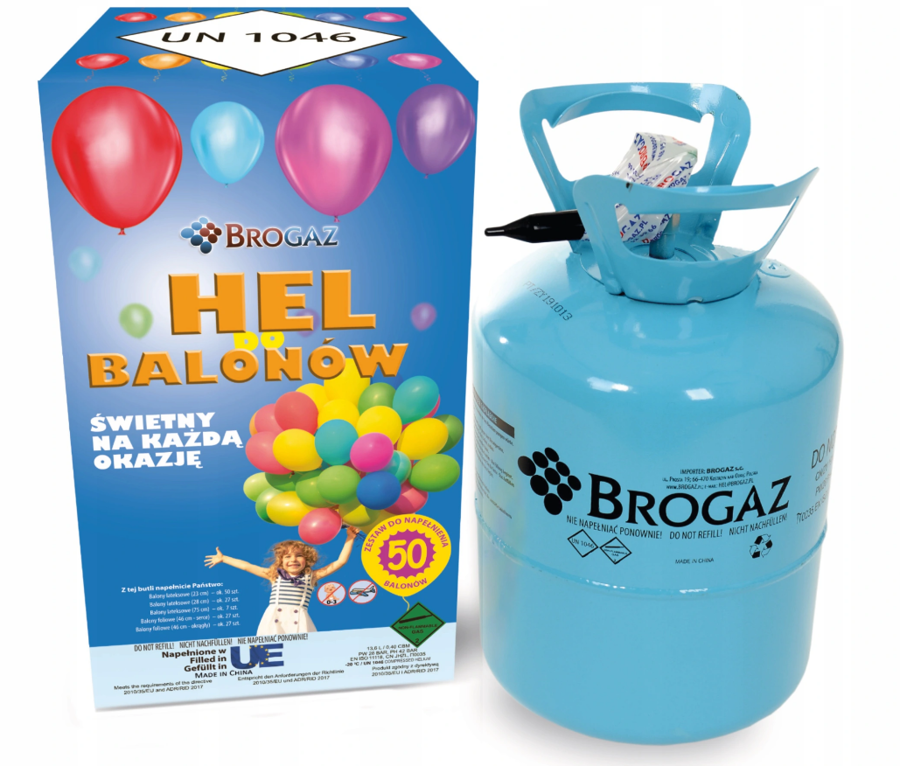 0,40 m3 helu wystarcza na napompowanie około 50 balonów lateksowych o rozmiarze 23cm (9 cali)