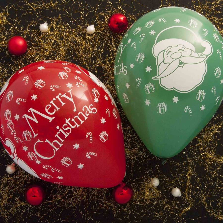 - Balony gumowe o klasycznym kształcie ze Świątecznym nadrukiem. Wielkość 12 cali.