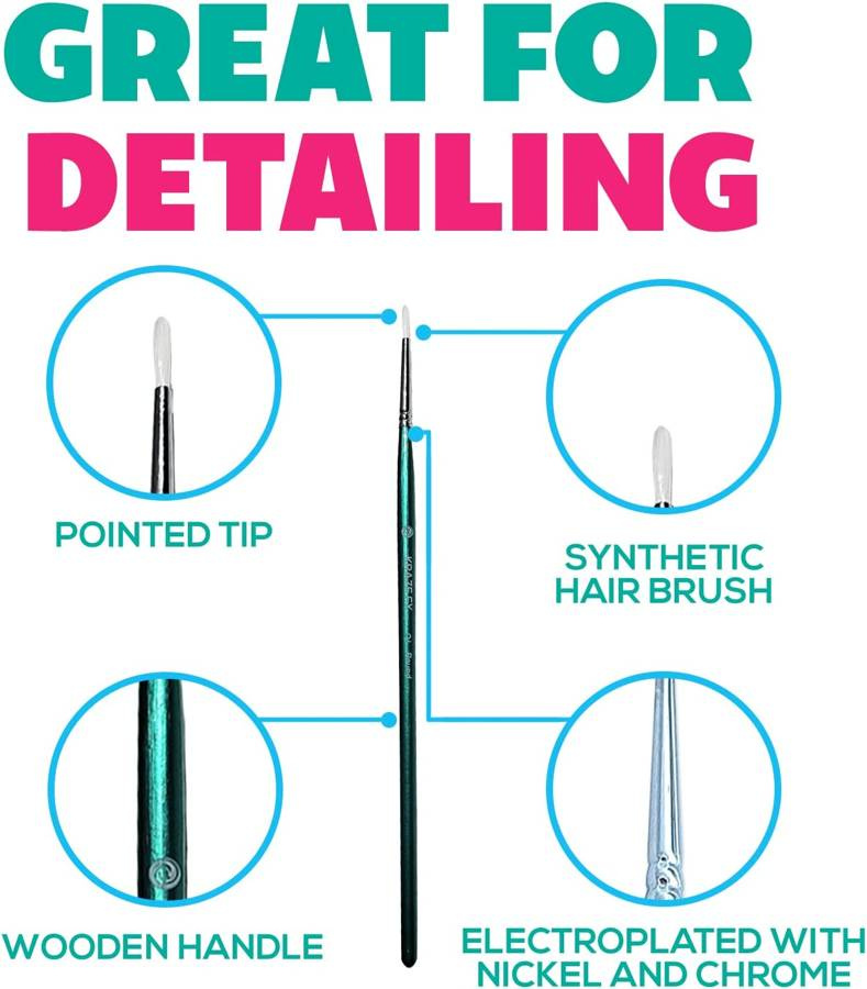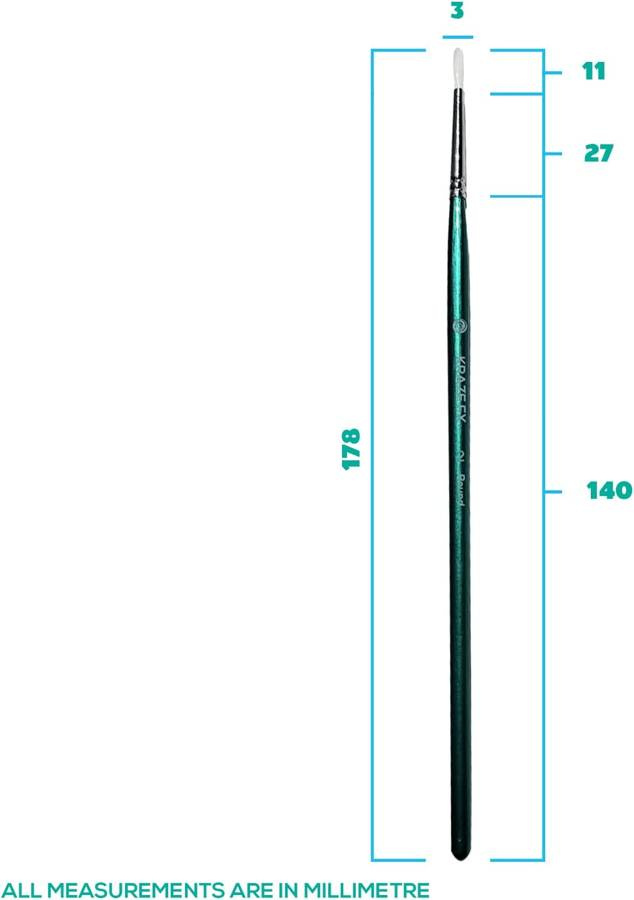Profesjonalne pędzle marki KrazeFX wyposażone w bardzo cienkie, okrągłe włosie, idealne do kropelek, konturów, wypełniania małych powierzchni i malowania szczegółów.
