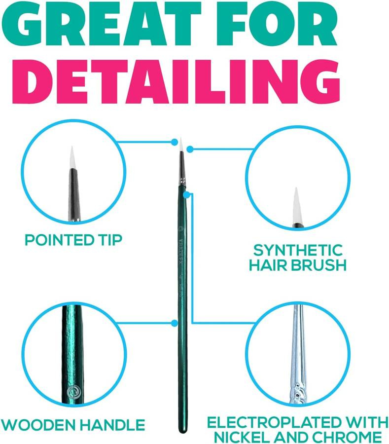 Profesjonalne pędzle marki KrazeFX wyposażone w bardzo cienkie, okrągłe włosie, idealne do kropelek, konturów, wypełniania małych powierzchni i malowania szczegółów.
