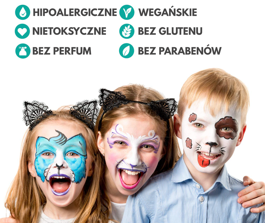 - Profesjonalne farby do malowania twarzy i ciała marki KRAZE. Stworzone na bazie wosku, mocno pigmentowane.