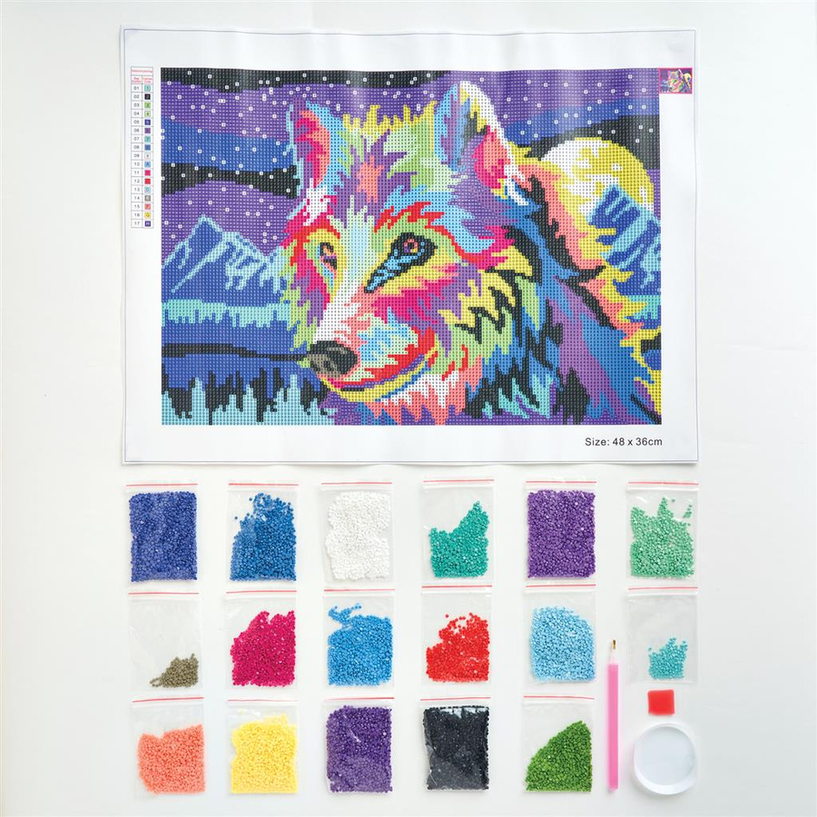 Zestaw do stworzenia mozaiki diamentowej z wizerunkiem wilka.