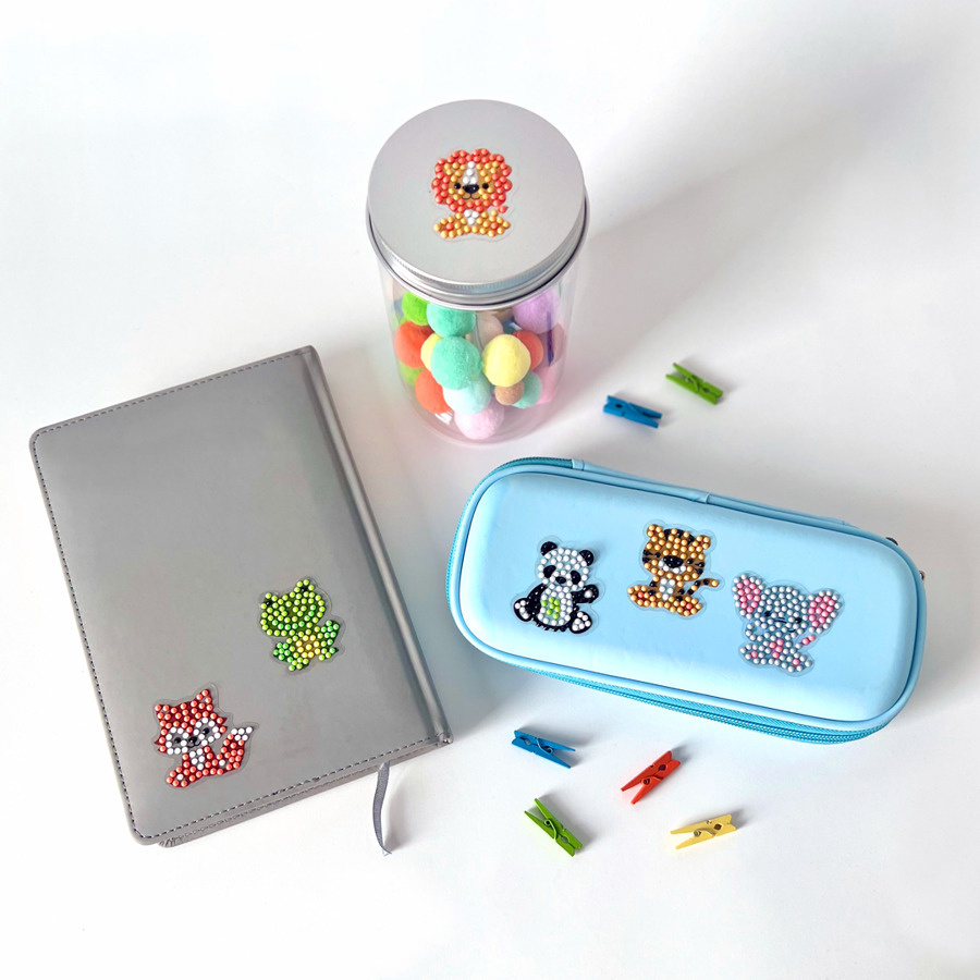 Naklejkami z haftem diamentowym można wykleić różne produkty dziecięce np. buty, etui na telefon, pudełko do okularów, plecaki, zeszyty czy piórniki. Absolutny MUST HAVE dla małych fanów i fanek naklejek ze zwierzakami!