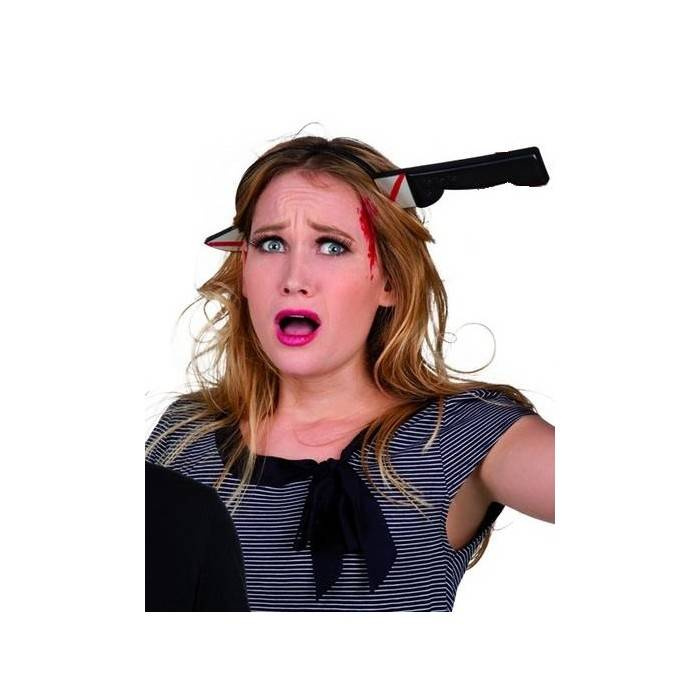 - Opaska z nożem przebijającym głowę - zabawny dodatek na Halloween, z pewnością zaskoczysz znajomych! Całość wykonana z plastiku.