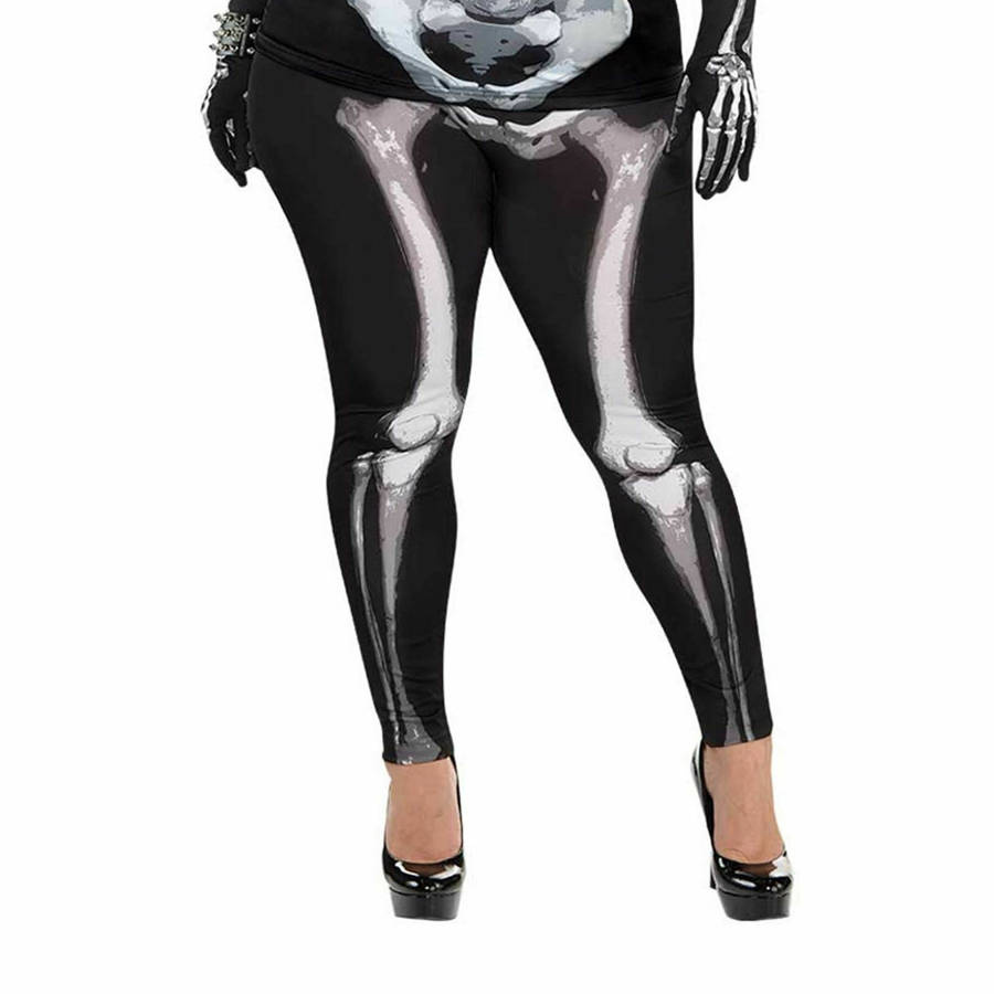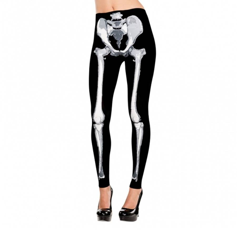 Kryjące, czarne legginsy z nadrukiem imitującym kości szkieletora.