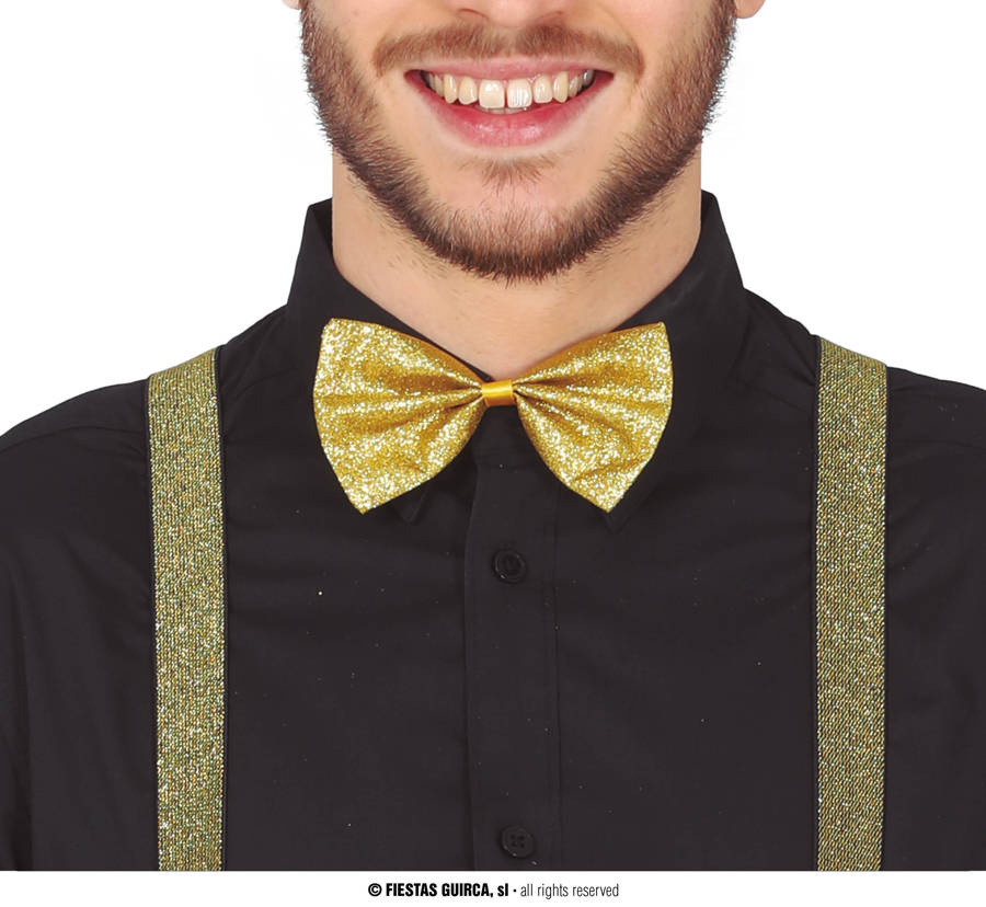 Złota lub srebrna muszka wykonana z połyskującej nici.