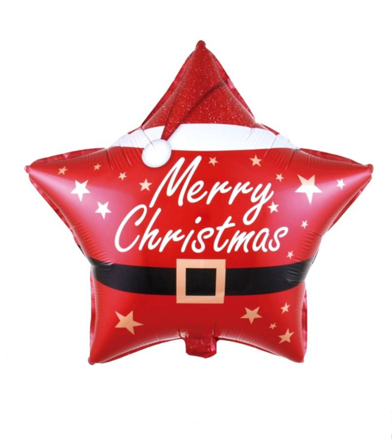 • Balon foliowy w kształcie gwiazdki, z napisem Merry Christmas. Wyjątkowy i oryginalny świąteczny wzór. Rozmiar 18 cali (46 cm).