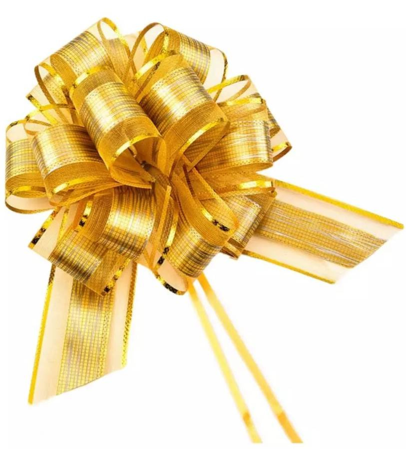 Kokarda XL ściągana do pakowania prezentów złota 17 cm