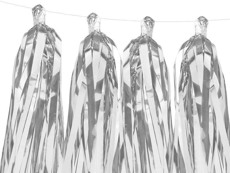 - Całość składa się z frędzelków w kolorze złotym lub srebrnym lustrzanym, zamocowanych na sznurku (12 frędzelków). Cena za zestaw. Produkt do samodzielnego złożenia.