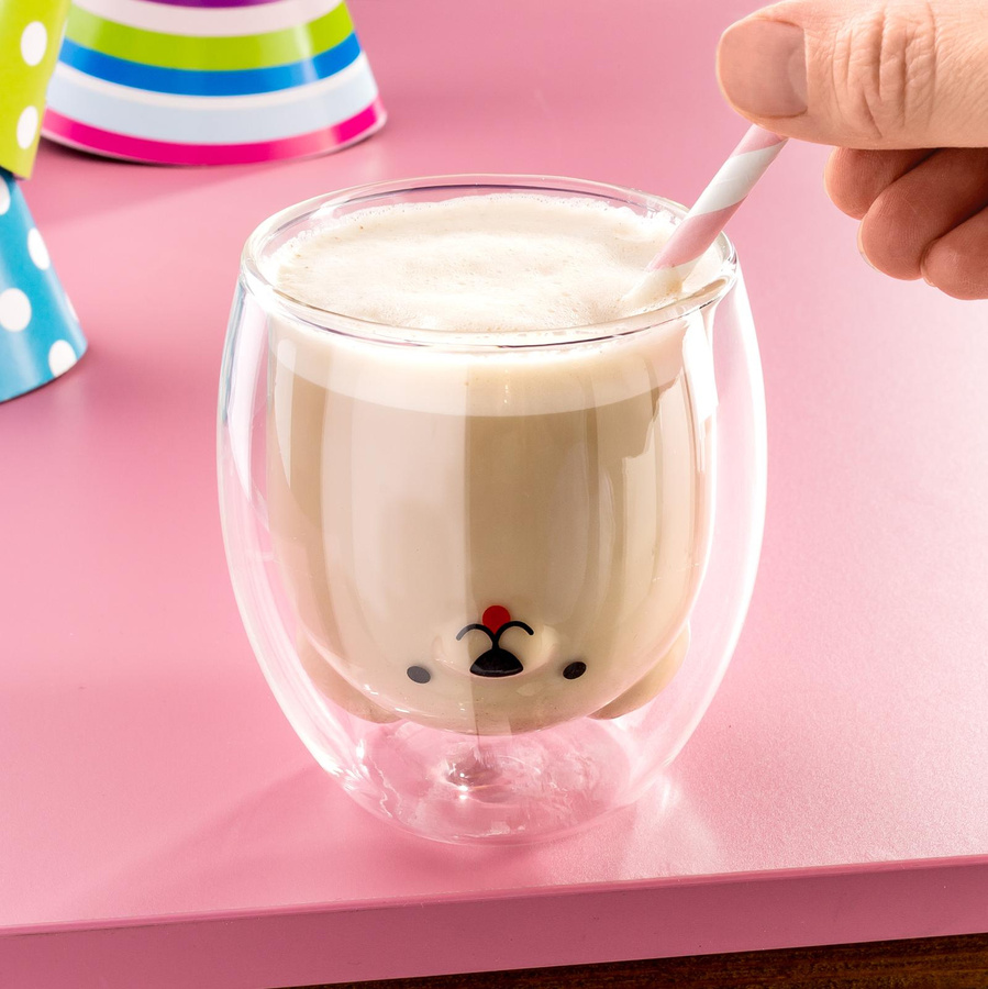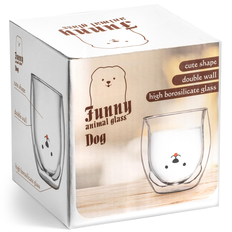 • Sympatyczna szklanka z wnętrzem w kształcie pieska nie tylko dla dzieci, choć one pokochają ja najbardziej, z podwójnymi ściankami dla większego komfortu termicznego.