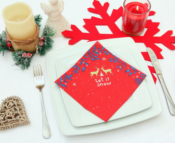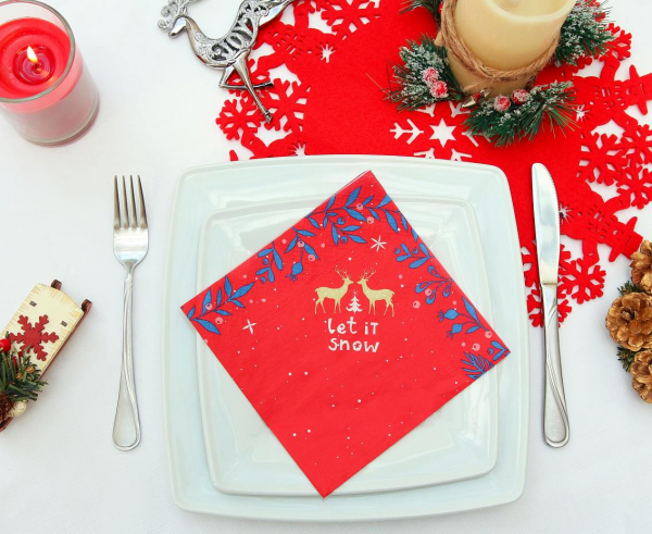 Wyjątkowe, papierowe serwetki świąteczne, zdobione Bożonarodzeniowym wzorem.