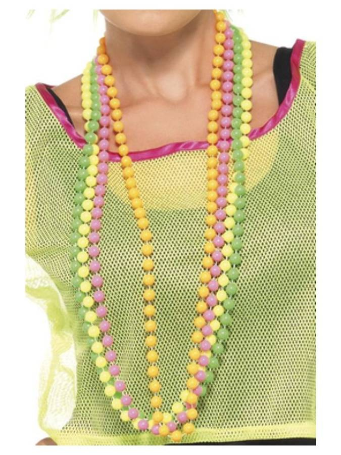 - Korale w neonowych kolorach. Zestaw zawiera 4 sztuki - każda w innym kolorze. Idealny dodatek do przebrania w stylu disco. Cena za zestaw.