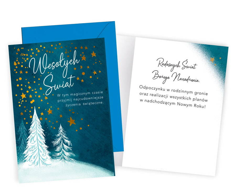 Kartka okolicznościowa Karnet świąteczny Wesołych Świąt niebieska
