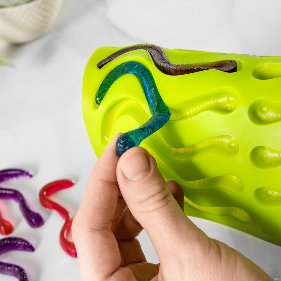 - Żelki, zwłaszcza takie domowe, wykonane własnoręcznie i w dodatku w takim robalowym kształcie uwielbiają nie tylko dzieciaki :) Z naszą foremką przygotujesz je bez problemu samodzielnie, szybko, zdrowo i pysznie.