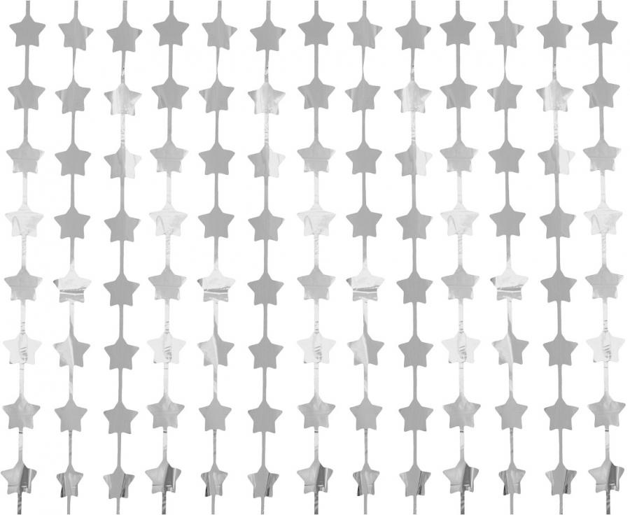 Kurtyna Party wisząca GWIAZDKI srebrna metaliczna 100x200cm