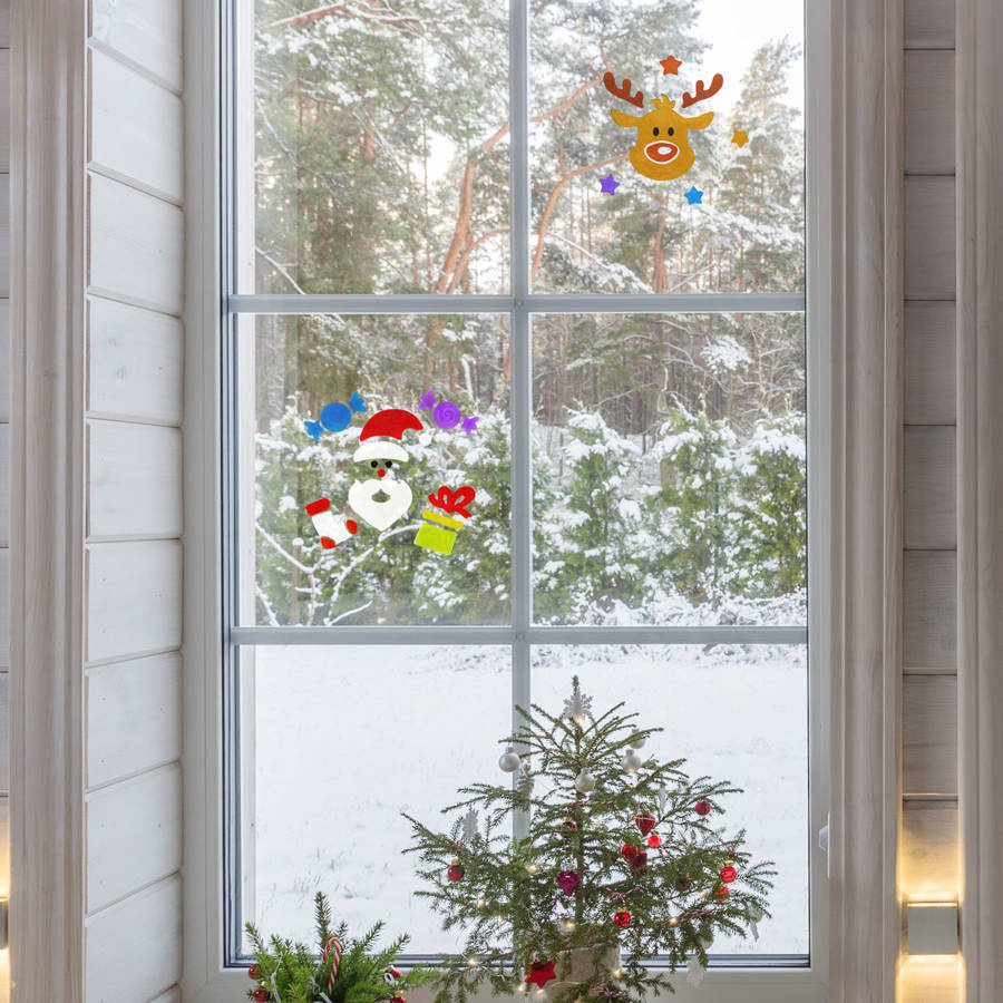 - Naklejki żelowe, samoprzylepne na okno. Idealne, aby ozdobić dom i przygotować go na Święta Bożego Narodzenia. Wzór wysyłany losowo. Cena za arkusz.