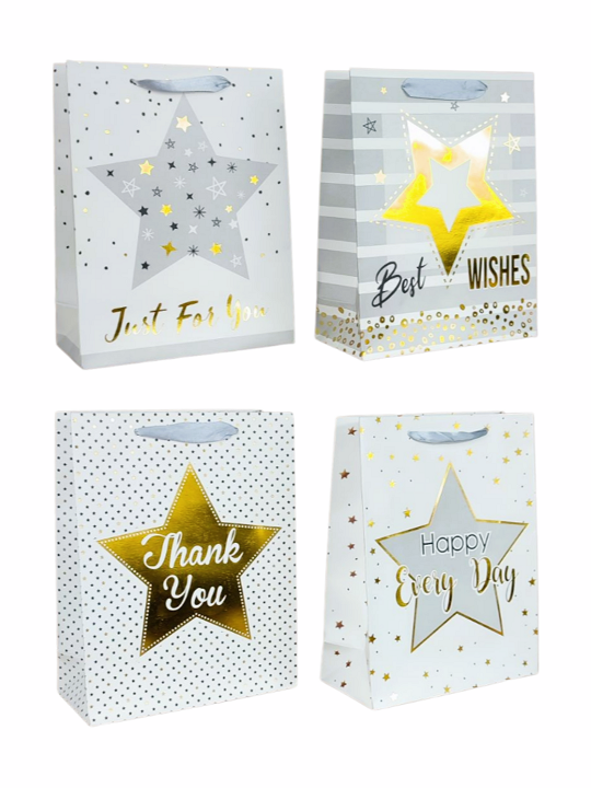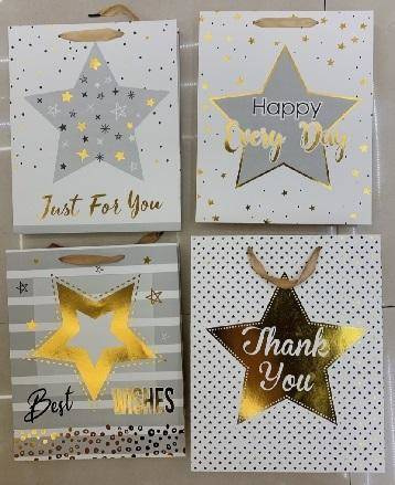 Torebka prezentowa elegancka gwiazdki złote 18x23 cm
