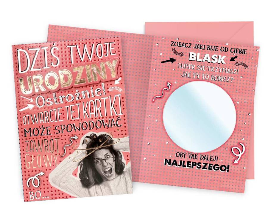 - Kartka Dream Cards "Urodziny z lusterkiem". Kolor różowy. Rozmiar B6. Cena za sztukę.
