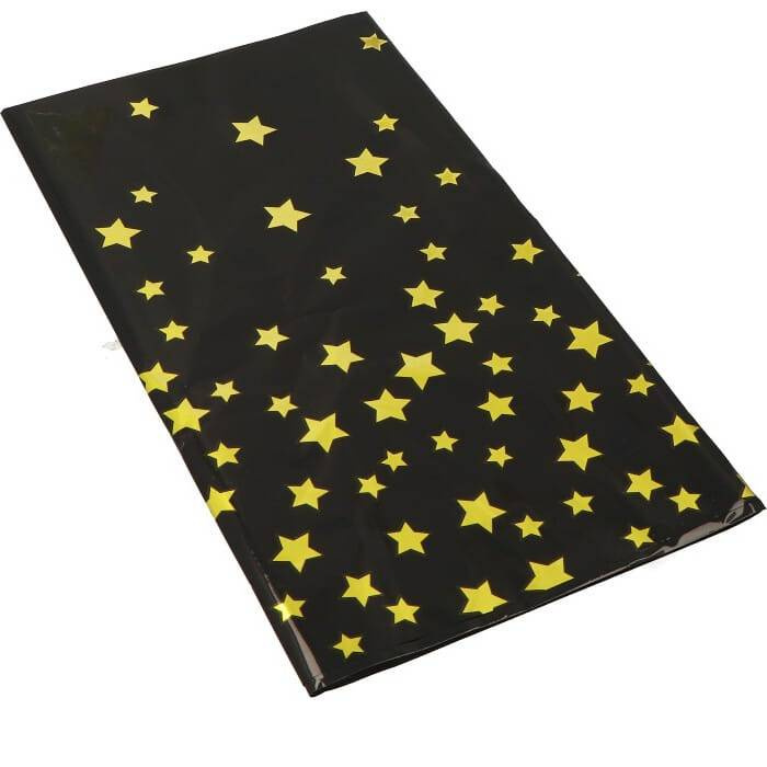 Obrus foliowy CZARNY w złote gwiazdki 137 x 274 cm