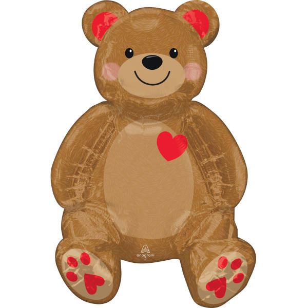 - Uroczy balon foliowy w kształcie siedzącego Misia z serduszkiem. Wysokość ok. 50 cm. Przeznaczony do napełnienia powietrzem.
