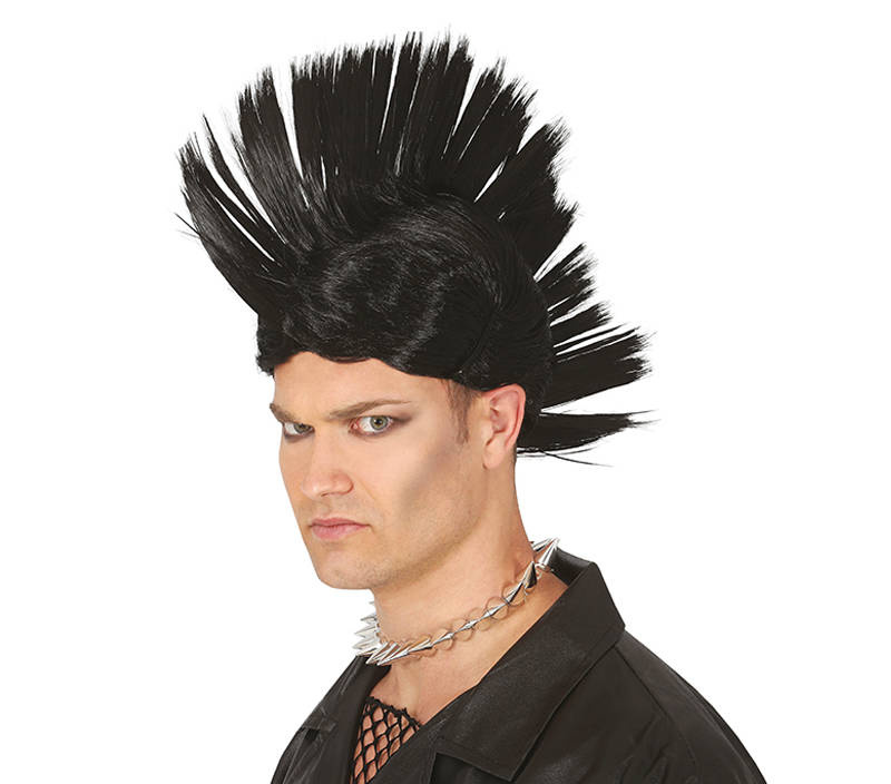 Peruka wykonana ze sztucznych włosów koloru czarnego.