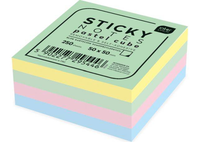 - Karteczki samoprzylepne, kolorowe. Wymiary 50 x 50 mm.