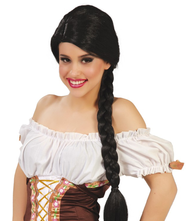 Damska peruka - długa, czarna, z pięknym i grubym warkoczem.