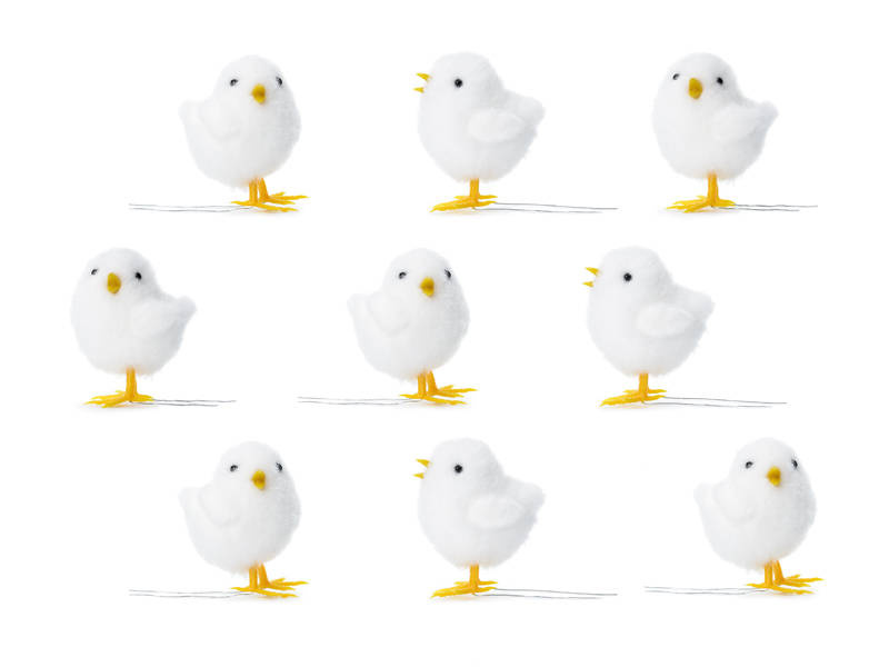 • Będą niezbędnym dodatkiem do wielkanocnych stroików, koszyczków lub indywidualnych kompozycji. Posiadają oczka zrobione z malutkich koralików, dziobek, skrzydełka oraz plastikowe nóżki. Wielkość ok. 7 cm.