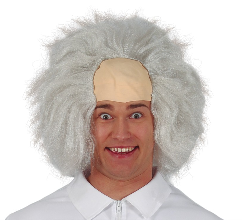 • Peruka szalonego naukowca z łysiną. Zamocowana na lateksowym czepku imitującym łysinę. Cena za sztukę.