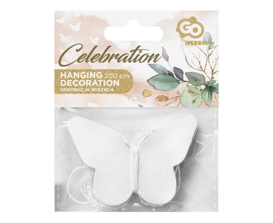 - Dekoracja wykonana z papieru. Szerokość motylków: 7,5 cm. Długość girlandy: 200 cm. Cena za sztukę