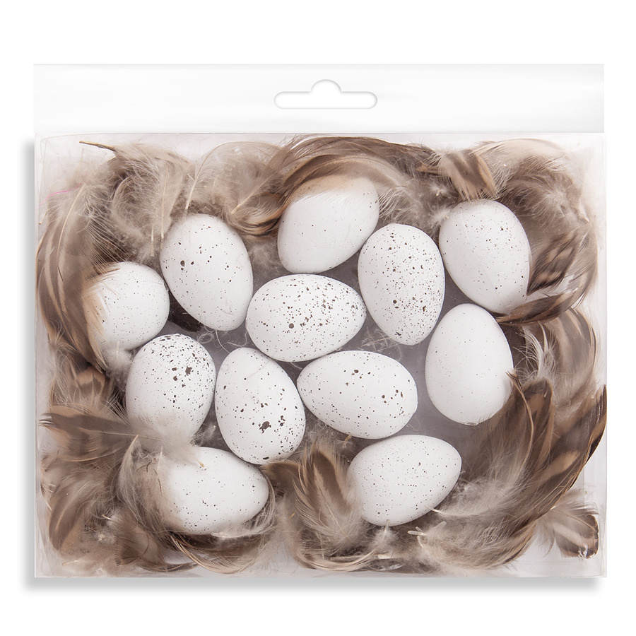 Zestaw zawiera 12 jajeczek oraz piórka.