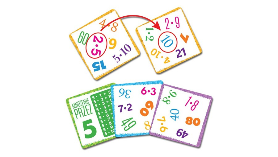Dodatkowymi elementami są karty z tabliczką mnożenia, które pozwolą dziecku szybko przypomnieć i utrwalić wiedzę.