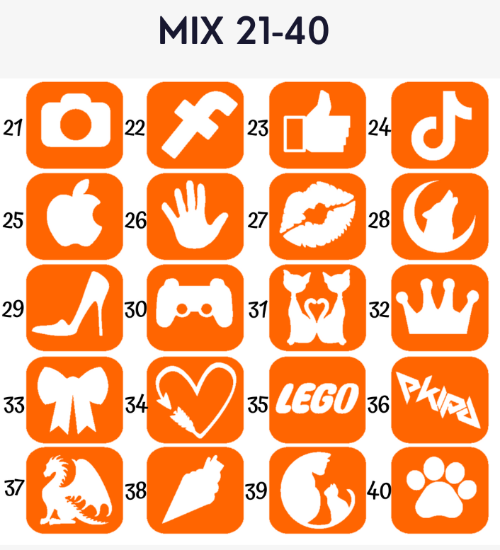 Zestaw zawiera 20 sztuk szablonów o zbliżonej tematyce. W zestawie znajdziesz wszystkie wzory pokazane na zdjęciu głównym.