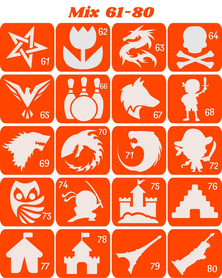 Zestaw zawiera 20 sztuk szablonów o zbliżonej tematyce. W zestawie znajdziesz wszystkie wzory pokazane na zdjęciu głównym.