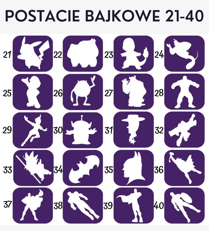 - W opakowaniu znajduje się 20 sztuk szablonów tematycznych, każdy wycięty osobno.