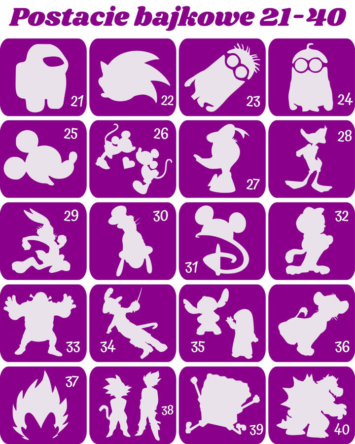 Zestaw zawiera 20 sztuk szablonów o zbliżonej tematyce. W zestawie znajdziesz wszystkie wzory pokazane na zdjęciu głównym.