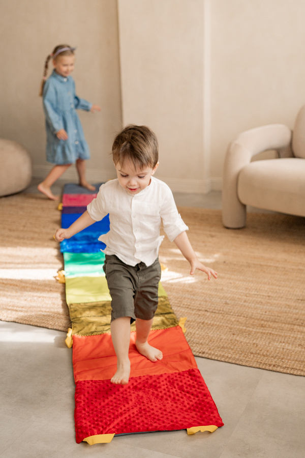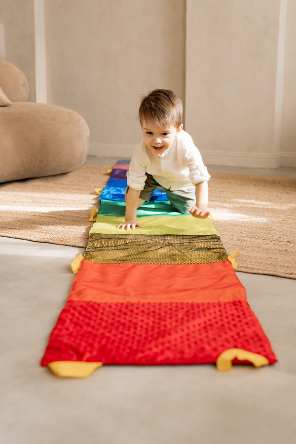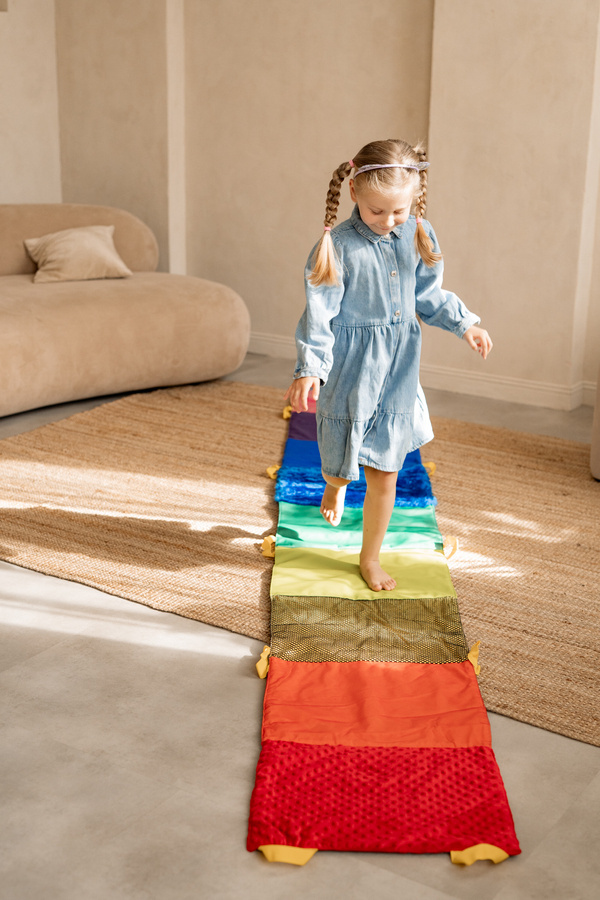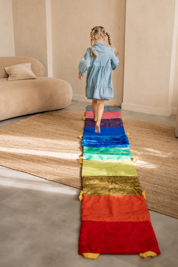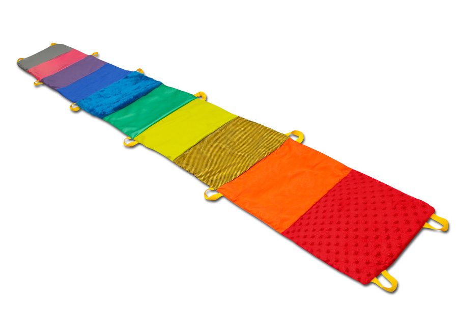 Barwny chodnik sesnoryczny daje nowe możliwości zabaw. Posiada 10 różnych faktur ze starannie dobranych materiałów, każdy dostarcza innych wrażeń dotykowych, rozbudza wiele różnych emocji. Chodnik sesnoryczny rozwija zmysł dotyku, ćwiczy wrażliwość i koncentrację. Ponadto znakomicie wspomaga rozwój koordynacji wzrokowo - ruchowej, ćwiczy refleks i spostrzegawczość, równocześnie umożliwia czerpanie radości płynącej z ruchu i przebywania w grupie.