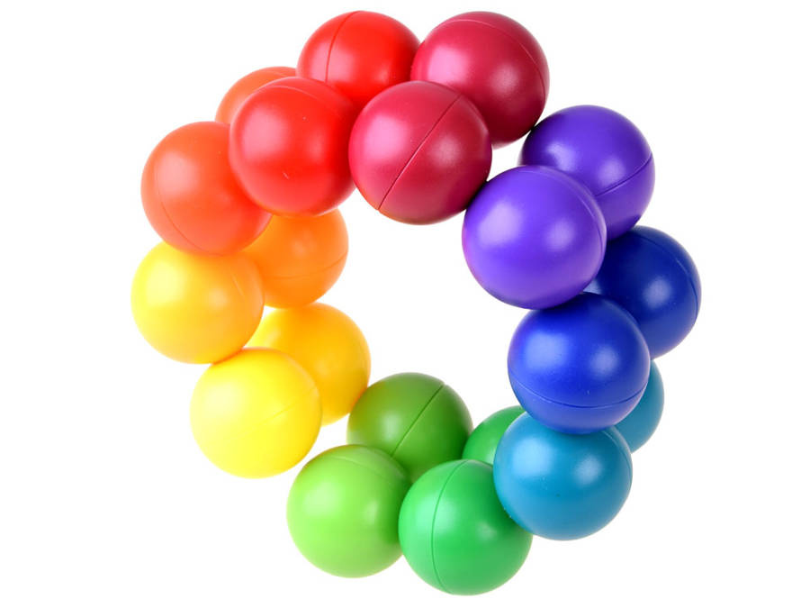 Nowa, kreatywna układanka z połączonych ze sobą kolorowych kulek, dzięki której Twoje dziecko osiągnie nowy poziom intelektualnej rozrywki. Kulki zapewnią podczas ćwiczeń znaczną poprawę zdolności manualnych palców i dłoni oraz rozwiną wyobraźnię przestrzenną i twórcze zdolności mózgu.