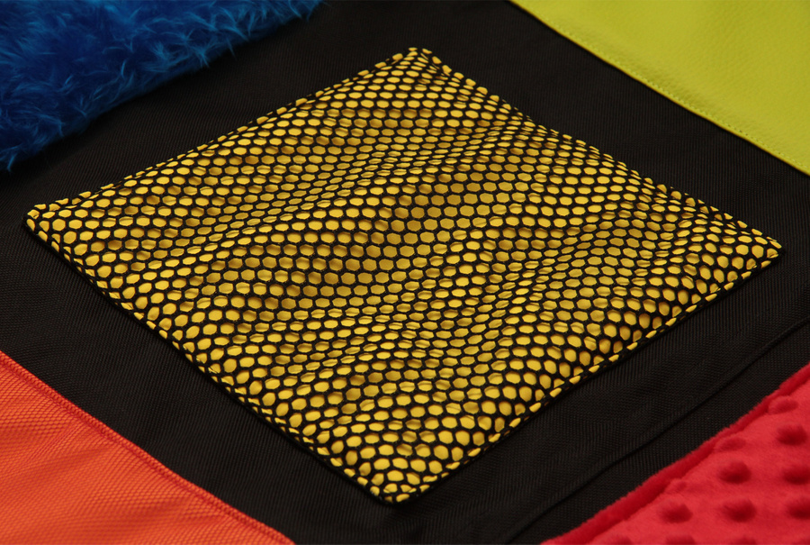Mata wykonana jest z kilku rodzajów tkanin, od spodu jest podszyta antypoślizgową, mocną i wytrzymałą tkaniną, dzięki czemu jest trwała i bezpieczna.
