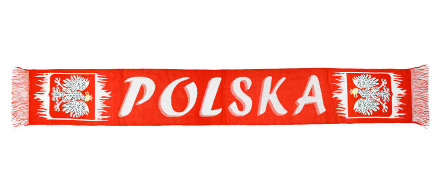 Niezbędny atrybut prawdziwego kibica, biało-czerwony szalik z napisem Polska.