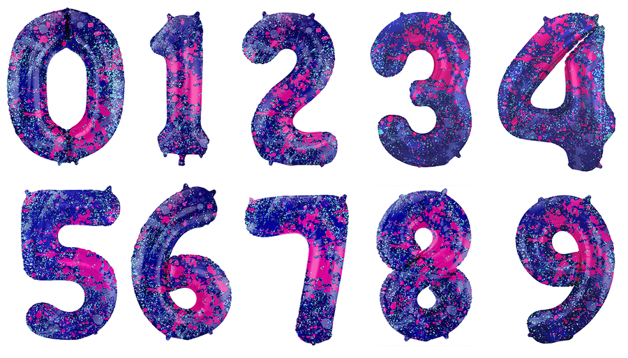 • Balon foliowy CYFRA z nadrukiem w motywie graffiti, rozpryskanej farby. Wysokość ok. 86 cm. Cena za sztukę.