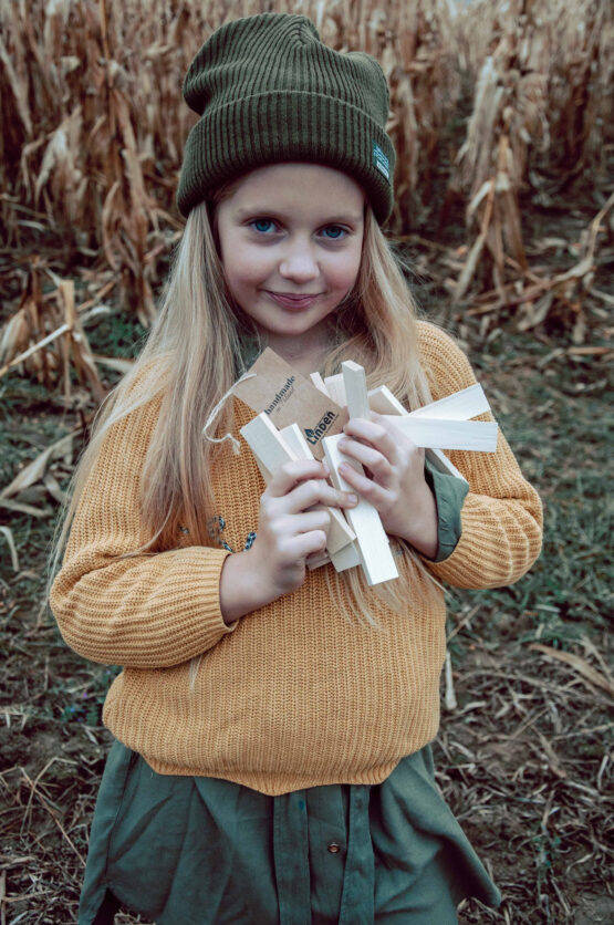 W pełni naturalne, wykonane z litego certyfikowanego polskiego drewna lipowego, wyjątkowo przyjemne w dotyku, produkowane bez użycia substancji chemicznych, umieszczone w praktycznym eko-worku.