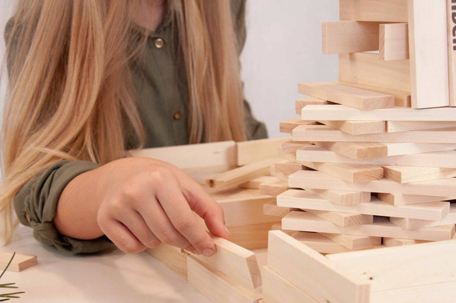 Wszystkie klocki mają identyczny kształt i rozmiar: mają wygląd niewielkich deseczek.