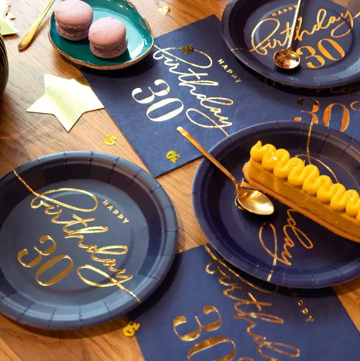 Talerzyki papierowe 30 URODZINY granatowe 18 cm 6 szt.