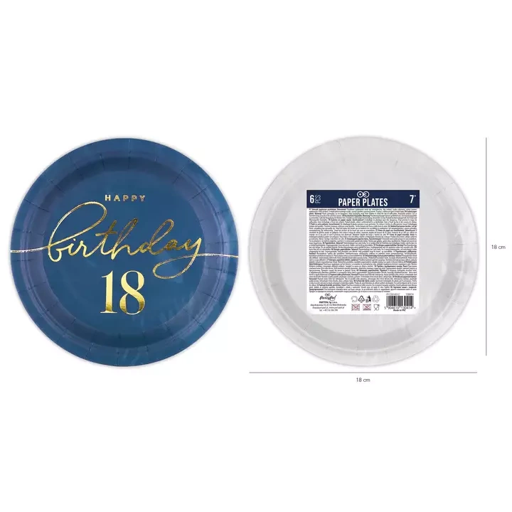 Talerzyki papierowe 18 URODZINY granatowe 18 cm 6 szt.