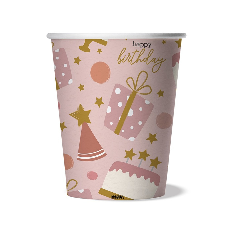 Kubeczki papierowe Happy Birthday RÓŻOWE 250 ml 8 szt.