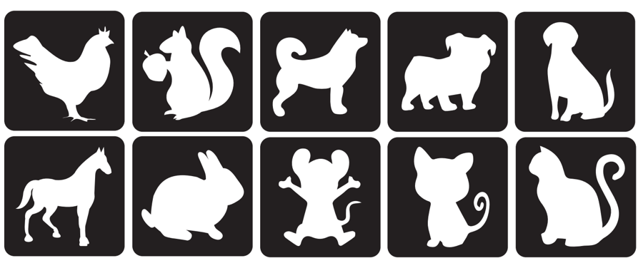 - Zestaw zawiera 10 sztuk szablonów w tematyce zwierzęcej. Szablony wysyłane na 1 arkuszu. Cena za cały arkusz.