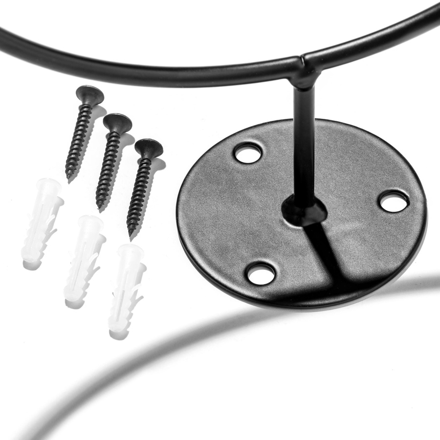 - Sprytna metalowa obręcz, łatwa i szybka w montażu do ściany, świetni sprawi się jako stojak na różnego rodzaju piłki, a także jako wieszak na np. kask czy czapkę z daszkiem, a nawet... doniczkę z kwiatkiem :)